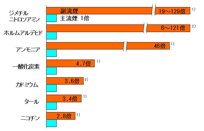 | 副流煙と主流煙の有害物質の量 |