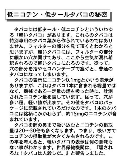 これはタバコ会社が主流煙は害が少ないようにわざと計測結果を少なくするために用いた方法であると思われる。