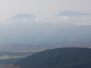 ガスで登山道を間違わないように黄色の表示や登山道に沿ってロープが張られています。