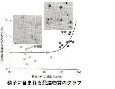 病気を予防しましょう。 工場の機械が壊れなかったら、同じ製品を作り続けます。これと同じで人の遺伝子も損傷しなければ同じ臓器(皮膚や毛髪、精子、インシュリンなど)を作ります。ですから高齢になっても10代の皮膚や、白髪や禿、糖病病などになっていない人はそれらを作る遺伝子が損傷していないからです。遺伝子が損傷する原因は発癌物質や放射能、癌を引き起こすウイルスなどに感染するためです。 日本人の2人に1人が癌になり、3人に1人が癌で死亡します。怪我をすると、細胞分裂して傷の部分を修復し、修復が終われば細胞分裂が終わります。この細胞分裂の終了を指示する癌抑制遺伝子が損傷すると無限大に増殖する癌細胞へと凶変します。 1999年、不妊で困る男性の精子をDNA検査した所、タバコ煙に含まれる発癌物質で精子が損傷(下図)しているのがわかりました。重度の場合には、不妊に軽微な場合にはダウン症や障害児に繋がります。 これらを防ぐため、厚労省は2000年に自治体に屋内外の受動喫煙対策を徹底させ、教職員や医療従事者は禁煙するよう通知(健康日本21)。 文科省も「学校を敷地内禁煙+通学路も禁煙」の通知。