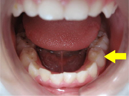 | シーラントを左下乳歯にして、1週間後に来院した状態です。 |