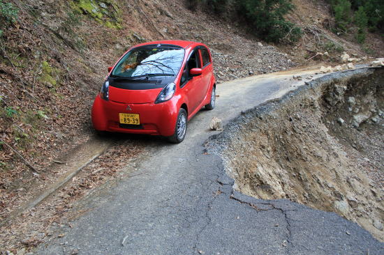 | 道が狭くてタイヤが斜面にはみ出ています:2019-04 |