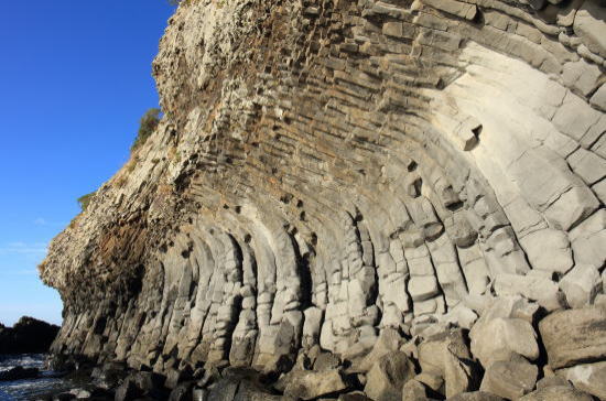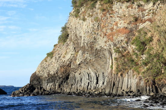 柱状節理のオーバーハング:七ツ釜の西側の海岸