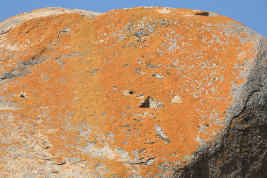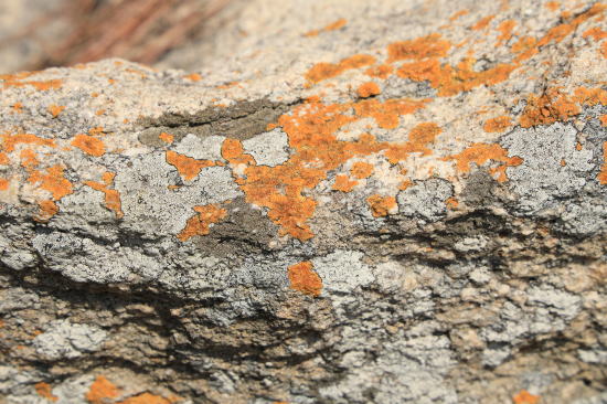 これは菌類と藻類が共生しているツブダイダイゴケという地衣類です。