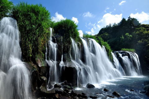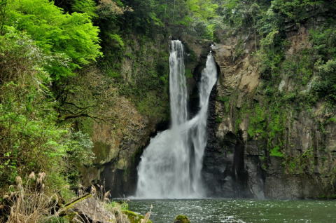 白水の夫婦滝である雄滝と雌滝。その二つの滝にそれぞれ架かる吊り橋があります。雄滝に架かる長さ164mの「白龍王橋」、雌滝に架かる長さ120mの「白龍妃橋」がそれです。こ |