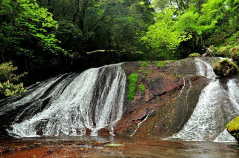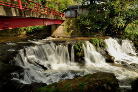 下城滝の上流にある。観光地である大イチョウの駐車場に止めて橋を渡り川沿いの遊歩道から見える。