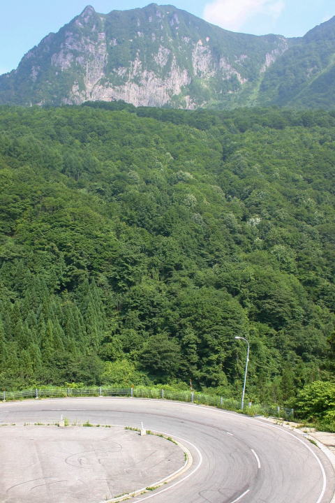 国道48号の関山の交差点から東北の名山、船形山(1500m)の登山口に向かっていくと、黒伏山(1226m)の大岩壁が見えてくる。「黒伏高原スノーパーク ジャングル・ジャングル」のスキー場からは、黒伏山南面の高さ300m、幅1kmの柱状節理の大岩壁が間近に見られる。東北でも最大級の大岩壁の眺めは超迫力がある。