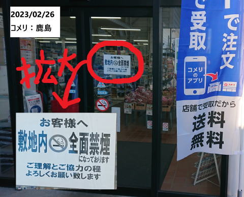 2023/02-26 コメリ 鹿島 敷地内禁煙