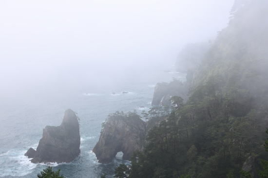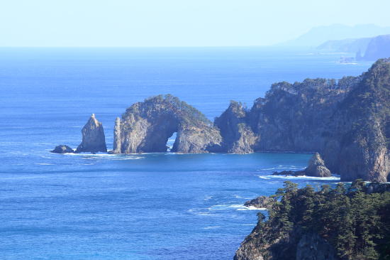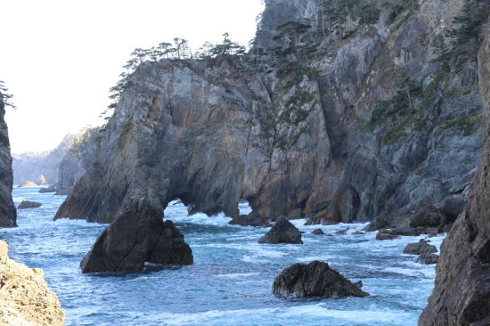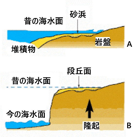 一方、日本海側の経ヶ岬→斜面がなだらか↓