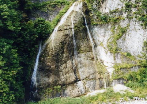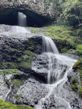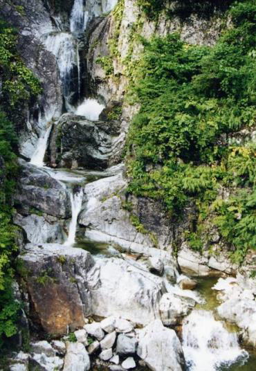 白山スーパー林道の脇にある滝。途中の吹き上がる水が面白い。