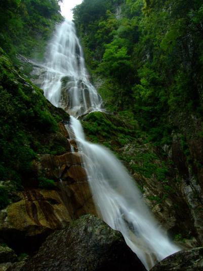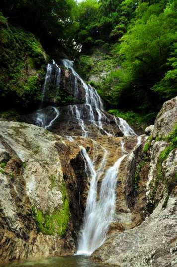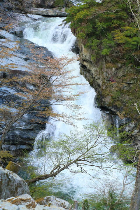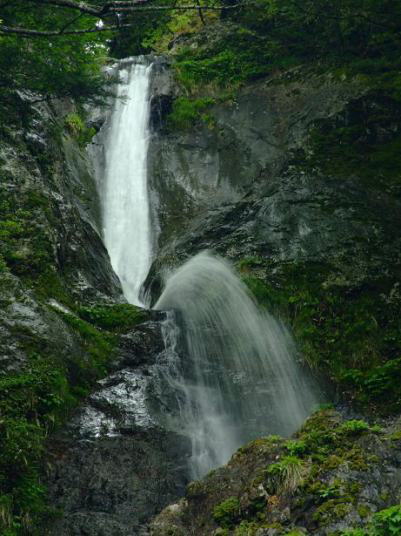 道の駅杉の湯を超え、井戸あたりで左折し橋を渡る。 橋を渡るとすぐに右折し、井光川沿いに林道を昇っていく。 途中広い駐車場らしき看板があるが無視し井光川沿いの細い道を直進し、 岩戸の滝の横を通りどんどん奥まで進むと駐車スペースがある。道は狭いので対向車には十分な注意を。 駐車場から滝までは130m。