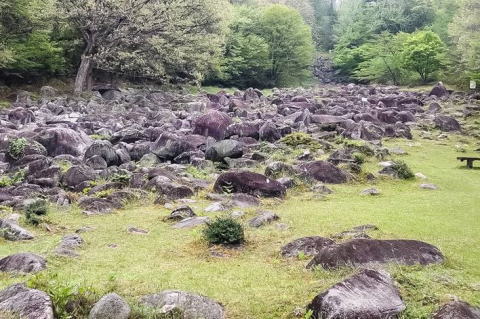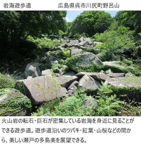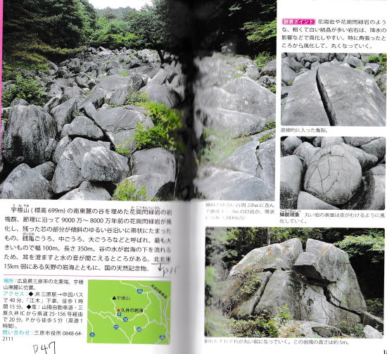 三原市の備南地域最高峰、標高699mの宇根山南麓の谷間に広がる「久井の岩海」。