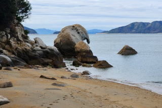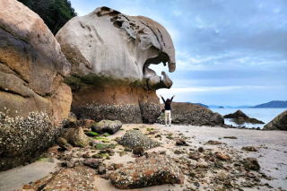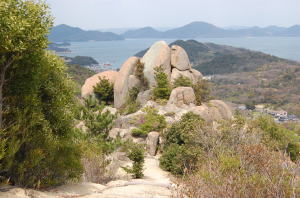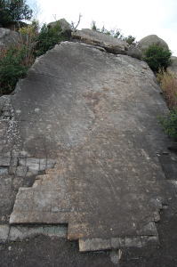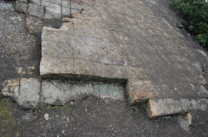 (左)鎧岩 (右)碁盤目のように四角く割れてはがれている