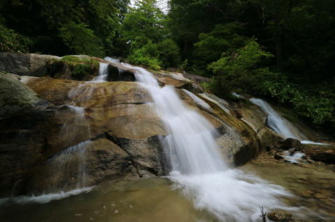 国道365号線を関ヶ原から木之本方面へ向かいます。 「野一色東」交差点を右折し、県道40号線へ進みます。 道の駅「伊吹の里」や伊吹山を右手に見ながら姉川ダムを目指します。 ダムの少し手前にある「寺越トンネル」のやや手前に大きなヘアピンカーブがあり、 その途中に写真の標識と水道施設があります。 そこを枝道に右折して、その先の分岐を左折します。 間もなく写真の下手の滝見登山口があります。