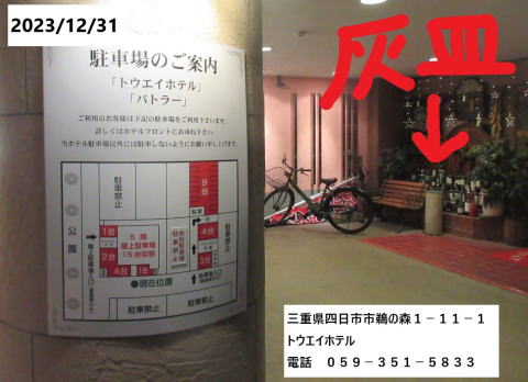 2023/12/31 三重県四日市市鵜の森1−11−1 トウエイホテル 電話 059−351−5833 |