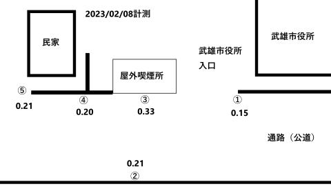 | 武雄市役所 屋外喫煙所 粉塵測定結果 2023-02-08 | ||
