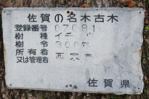佐賀の名木古木に選ばれたために、標識を5寸釘で打ち込まれる。