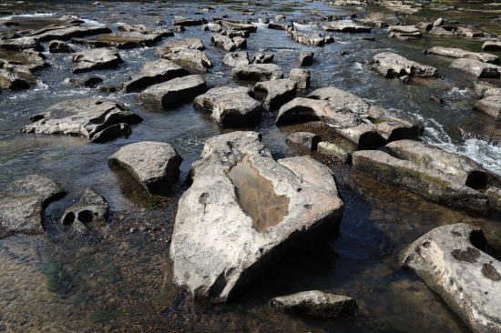 この狭い場所にこれだけの甌穴が密集しているのも樹木が生えていた