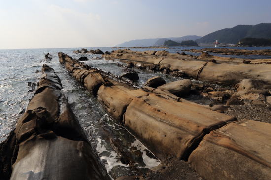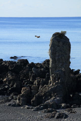 ↓近くの海岸には火山頸(マグマの通り道)と思われ岩があります。
