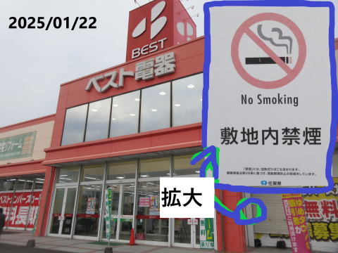 日に電話があり、受動喫煙を防ぐため灰皿を撤去するとの電話回答がありました。