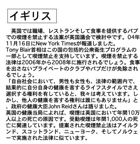 英首相 屋外喫煙の規制を強化する方針 イギリス政府は、2009年以降に生まれた人への紙巻きたばこの販売を禁止する方針を掲げていて、喫煙率の抑制に向けた取り組みも進めています。パブの経営者らからは規制への懸念の声があがっているほか、保守党など野党側は「経済的な損害が出る」などと反発しています。 |