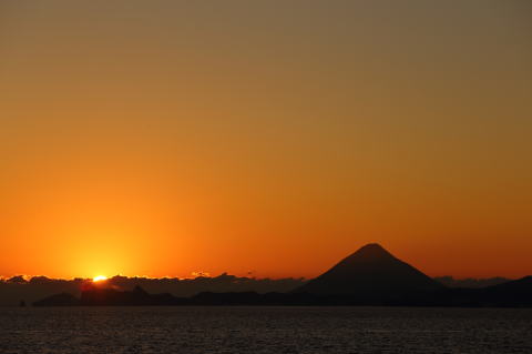 開聞岳に沈む夕日 |