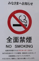 佐賀県鹿島市内の金融機関の敷地内禁煙の状況