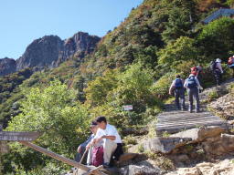 連休で人が多いので、鎖場が数珠つなぎになっています。鎖場とは別の下記のルートもあります。