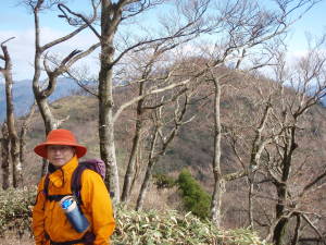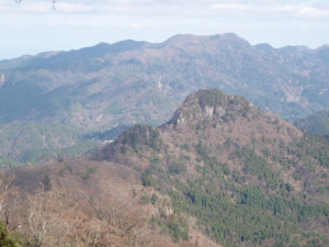 北岳から高住神社方面への下山路から見える鷹ノ巣山