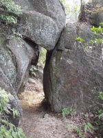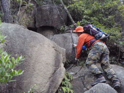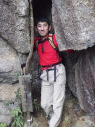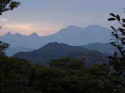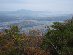 山頂の展望台から見える鷹ノ巣山(左)と英彦山(右)