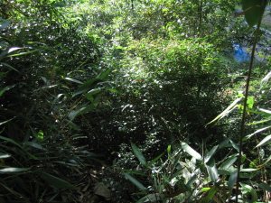 | これが、草むらに覆われた最初の部分の登山道です。5mも離れれば、前の人が見えません。 | ||