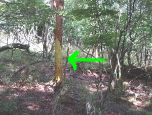 | この近辺は鹿に樹皮を食べられた木が目立ちます。 | ||