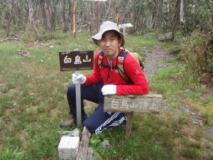 | 白鳥山山頂(09:27)です。 樹木が生茂っているので展望はありません。 でも万歳 |