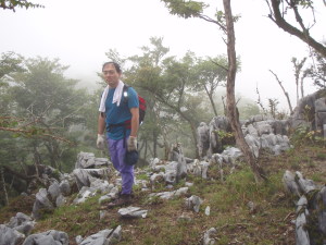 | 白鳥山から道がわかり、時間に余裕があれば、時雨岳(1546m)まで縦走する予定でしたが、縦走途中で、ガス(霧)が出てきたので、縦走をやめて下山する事にしました。 時雨岳へのルートは、国土地理院発行の地図にも掲載されていません。 |