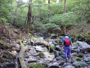 | 上ノ内谷を登ります。 最初の部分は谷には水が流れていませんでした。 |