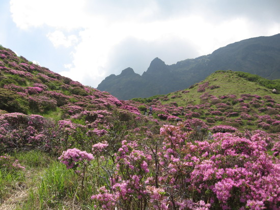 高岳から仙酔峡へ下る途中で咲くミヤマキリシマ