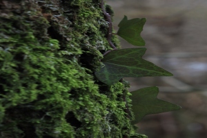 苔におおわれた樹木にはりつく蔦