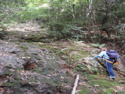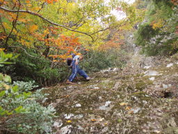 | 4ピッチ目の岩場を終わると、ザイルとクライミングシューズをはずし、普通の登山靴を履いて尾根を目指します。 この辺は紅葉が綺麗でした。 |