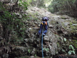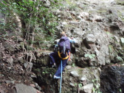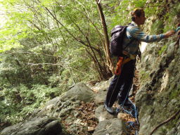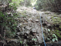 ザイルをつけて登ります。 1ピッチ目です。 比較的楽なコースです。 |