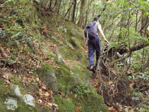 苔の生えた岩場を通ります。