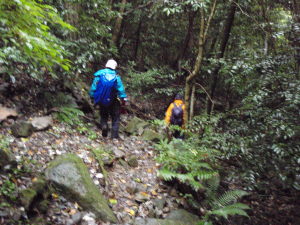 ウナギテ沢は雨天時は滑りやすく、沢の水が増水すると濡れずに沢を渡れなくなります。