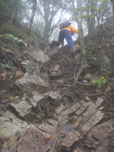 経ヶ岳への岩場を慎重に登ります。