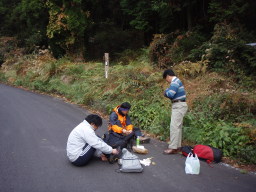 | 2009年11月29日(日)09:41 多良岳(一ノ宮岳〜前岳〜多良岳北壁〜金泉寺) 車を降りて登山の準備をします。 |