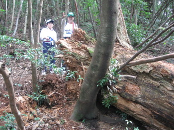 台風や強風で老木が倒れています。