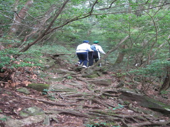 佐賀県では一番原生林が多いと思われる山です。石と木の根がおりなす登山道を登ります。
