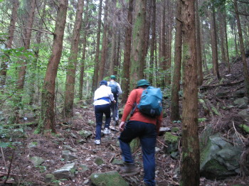 平谷から馬の背付近まで人工林ですが、ここから先は豊かな原生林の登山道です。