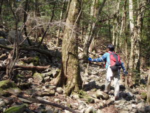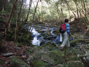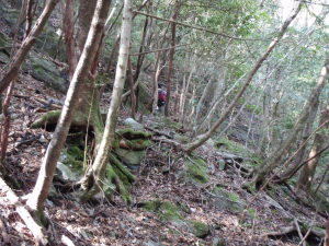 原生林の歩きやすい所を進みます。