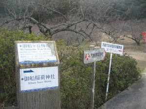 | 08年02月10日の午前中に登った虚空蔵山山頂から御船山が見えたので、午後から武雄市内に行く予定があったので、ついでに登りました。 登山口は御船ケ丘梅林入口です。 |