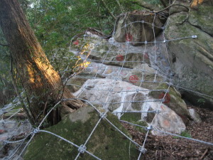 | 途中の危険地帯には落石防止のためネットが張られています。 |
