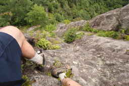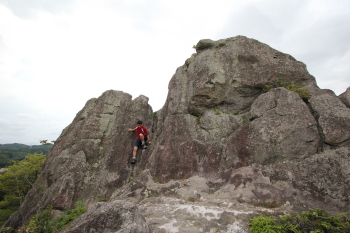| 山頂です。駐車場から10分もあれば登れます。 下記は一番高い岩峰に続くルートです。 三脚を利用して撮影しました。 |